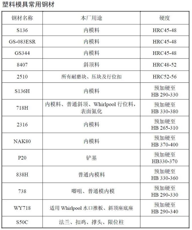 常用高硬熱處理鋼材,例如:SKD61、8407、S136